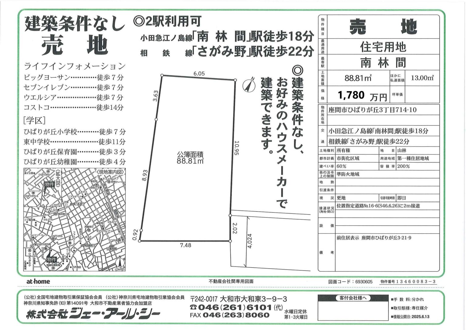 座間市ひばりが丘 建築条件なし売地 2025年12月22日 建築条件なし!お好みのハウスメーカーで建築できます! ★2駅利用可! 小田急江ノ島線「南林間」駅 徒歩18分 相鉄線「さがみ野」駅 徒歩22分 物件種目:住宅用地 土地面積:88.81㎡ 販売価格:1,780万円 ▼お気軽にお問い合わせください ☎ 046-261-6101 ✉ お問合せフォーム